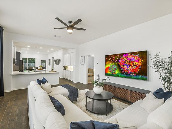 Welcome to this stunning one story home featuring an open-concept design and stylish finishes throughout. The inviting family room has a wall of windows and it flows seamlessly into the kitchen and dining area, creating a space for both everyday living and entertaining. The kitchen showcases painted cabinetry, a center island with custom paneling, stainless steel appliances, under-cabinet lighting, abundant cabinet/counter space, and the dining area that overlooks the private backyard. The primary suite is tucked away at the back of the home and features a beautiful bath and generous walk-in closet. Additional highlights include custom shiplap in one of the secondary bedrooms, upgraded baseboards, painted accent walls, high ceilings, and more. Enjoy the outdoors on the covered patio in the private, serene backyard with no back neighbors. Ideally located with easy access to zoned schools, 99, and 45.