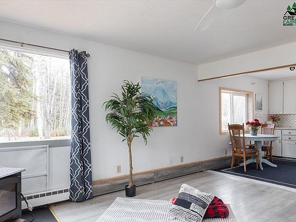 This charming 1.5-story home sits on a spacious corner lot surrounded by beautiful spruce trees, offering a peaceful and airy North Pole setting just minutes from downtown. Featuring 4 bedrooms and 1 bath, this cozy home is largely move-in ready but still offers great equity-building potential for those who love to add their own touch. Step through the front door into a welcoming entryway complete with a washer and dryer and space to hang coats and kick off winter boots. The kitchen flows seamlessly into the open living area where a wood stove provides both ambiance and warmth on chilly Alaska nights. Some of the construction is furred-out 2x6 for added insulation, and the triple-pane windows help keep the home efficient year-round.