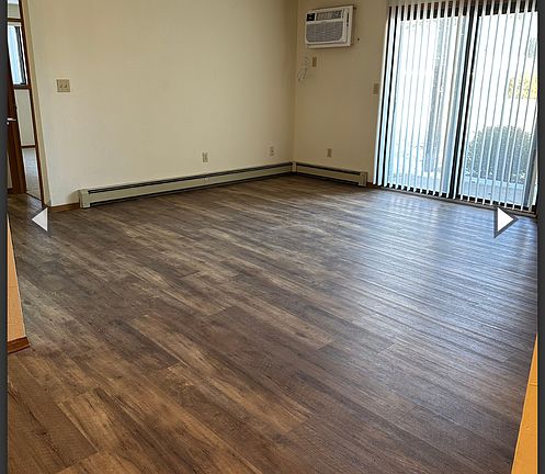 There is a large living room with new water-proof vinyl plank. The living room has its own private patio that offers lots of natural sun light into the unit. And a built-in wall unit AC. The Livingroom also features a storage closet.
