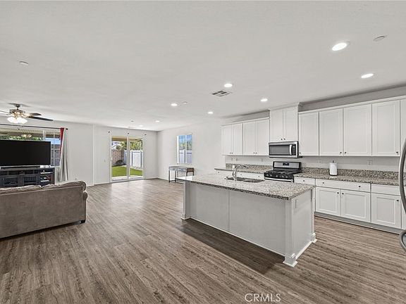 Welcome to this stunning single-story home nestled on a peaceful cul-de-sac in the highly sought-after Audie Murphy Ranch community. Featuring 3 spacious bedrooms, 2.5 bathrooms, and a flex room/office that could serve as a 4th bedroom, this home offers an ideal layout for both comfort and functionality. Step inside to an open-concept living space with luxury vinyl plank flooring. (Bedrooms are carpeted) The heart of the home is the gourmet kitchen, white shaker cabinets with granite counter-tops, complete with a large island, walk-in pantry, stainless steel appliances and ample counter space—perfect for entertaining or casual family meals.