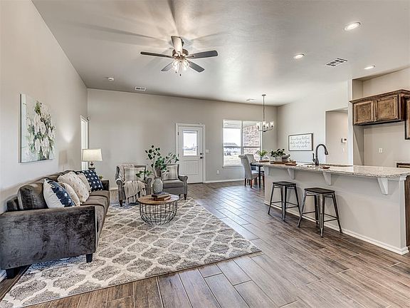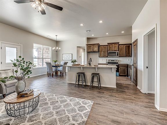 Beautiful home with 4 bedrooms, 3 full bathrooms, neutral finishes and a smart floorplan that you will love; all of this sitting on a 1 acre lot in Cashion School District. The first thing you'll notice is the large front porch that's perfect for seasonal decorating & greeting friends. As your guests enter they will love the open layout that allows them to easily relax in the living area while at the same time have a conversation with the cook. The dining area has a double window that overlooks the covered patio that is perfect for grilling & watching backyard activities. The yard is huge on this 1 acre lot. You can even add a shop & include it with your loan! For an additional $22,500 you get a 30'x40' shop! Back inside the home are 4 bedrooms in a smart arrangement with the primary suite secluded on its own side that's complete with a soaking tub, 2 separate vanities loaded with storage, a large shower and a massive primary closet. On the opposite side of the home sit the 3 other bedrooms. The first two are off the front corner that share a full bathroom that your guests can also enjoy. On the back corner is the 4th bedroom with its own large closet and full bathroom making it ideal for visiting friends and family or a teenager that demands their own space. Possibly the best thing about this home is the storage. The kitchen has a large pantry and the oversized laundry room can easily serve double duty as a crafting area, more storage space or even a small home office! You will love everything about this home, especially the cherry on the top...... $5,000 towards buyers closing costs or builder concessions!!!
