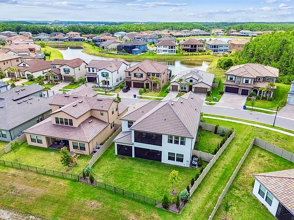 Built in 2023 and elevated with over a dozen premium upgrades, this remarkable home situated on an oversized lot was thoughtfully crafted to deliver effortless elegance, seamless indoor-outdoor living, and modern convenience—all in one unforgettable package. Where luxury meets lifestyle—this is the one you’ve been waiting for. Perfectly situated on an oversized corner lot in the exclusive, gated enclave of Ravello at Estancia, this grand 5-bedroom, 4-bath residence seamlessly blends refined design with exceptional functionality. From the moment you arrive, the curb appeal is undeniable. Elegant stone façade accents, meticulously upgraded landscaping, and a brick paver driveway create a warm, welcoming impression. The spacious 3-car garage combines beauty with practicality, featuring a sleek epoxy floor finish and garage wired for EV hookup. Inside, a flexible layout adapts to every lifestyle: a private home office or den, formal dining room, and generous bonus/game room offer versatile spaces for work, play, or relaxation. At the heart of the home is a gourmet kitchen designed to inspire—complete with a farmhouse sink, stylish pendant lighting, a butler’s pantry/beverage bar, and an expansive café-style dining area. The owner's suite is a private sanctuary, thoughtfully designed for both luxury and comfort. Enjoy direct access to a private balcony, perfect for quiet mornings or winding down in the evening. An oversized walk-in closet offers custom storage potential is a true showstopper. Indulge in the stand-alone soaking tub , or unwind in the expansive walk-in shower with frameless glass and designer fixtures. Dual quartz-topped vanities, elegant tilework, and premium finishes complete this serene, elevated space—making it the perfect place to relax, recharge, and retreat from the day. Throughout the home, thoughtful upgrades enhance both comfort and efficiency: 3M heat-reducing film on west-facing windows, wrought iron staircase railings, outdoor kitchen hookups (gas, plumbing, and electrical), and water treatment system hookup in the garage. Enjoy fresh interior paint (2025) and hurricane shutters, giving the home the feel of a brand-new build with every modern convenience already in place. Slide open the doors to the first of two screened lanais—perfect for al fresco dining, entertaining, or simply enjoying Florida’s signature breezes. Upstairs, a second screened lanai offers a peaceful retreat with added privacy and a private fire escape—an uncommon and thoughtful touch. The fully fenced and gated side yard—an owner-upgraded highlight—offers rare versatility: enough space to add a custom pool while still preserving a lush, grassy play area. It’s an ideal setup for families, pets, and gatherings alike. Located in a top-rated school district and part of Estancia—one of Wesley Chapel’s most sought-after communities—residents enjoy resort-style amenities including a clubhouse, zero-entry heated pool with lap lanes and water slide, tennis, pickleball, and basketball courts, playgrounds, parks, and miles of scenic walking trails. All just minutes from premier shopping, dining, and I-75, with downtown Tampa and Tampa International Airport less than 30 miles away. This is more than a home—it’s a lifestyle upgrade. Schedule your private tour today and experience the unmatched experience of Estancia living.
