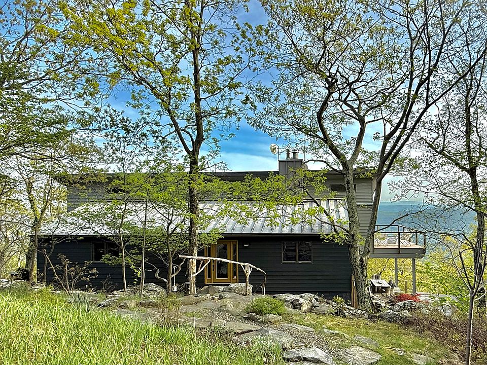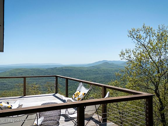 Perched high on iconic Overlook Mountain near the end of a private road — just minutes from the heart of Woodstock—this striking Modern contemporary home delivers jaw-dropping, panoramic views that stretch from the Catskills to the Hudson River, including Mohonk and the Ashokan Reservoir. It's the ultimate mountaintop escape: private, peaceful, and designed for unforgettable entertaining.