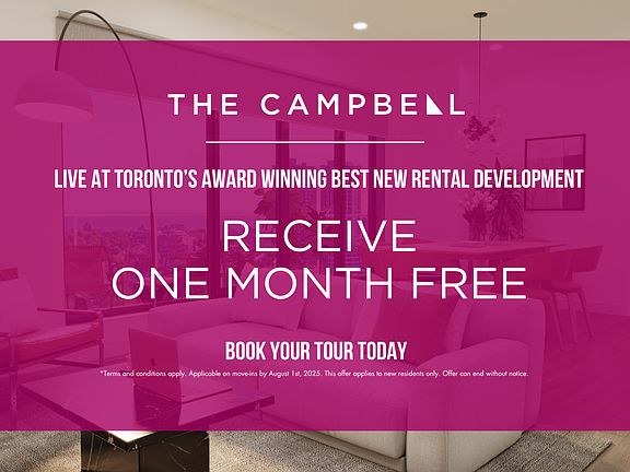 The Campbell - located in the vibrant Junction Triangle is designed to enhance your life. Awarded Toronto's Best New Rental Development of The Year!Our modern rental open-concept suites were designed with function and form. Abundant natural light and private balconies provide the perfect background of downtown Toronto and the tree canopy of the Junction Triangle. With an eclectic offering of suites, you'll have endless options for finding the perfect suite to suit your lifestyle. Join your new community today at The Campbell and experience stand-out service with exclusive partnerships and events, always complementary. Our dedicated on-site management team is committed to building a community that you'll be proud to call home.
