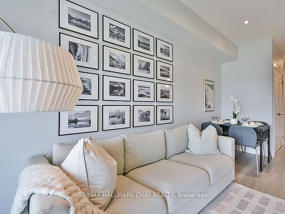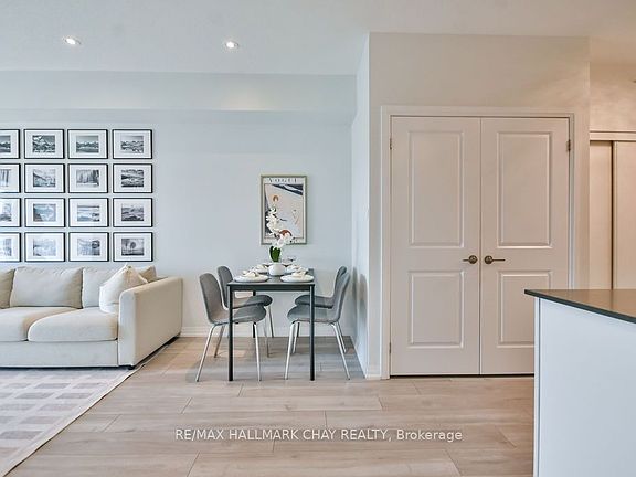 Welcome to residence where style, location, and convenience meet. This 1 bedroom + den condo offers 700 sq. ft. of impeccably designed living, with a versatile den that easily serves as a second bedroom or private home office. Upgraded pot lighting casts a warm glow over the airy layout, while a private northeast- facing balcony captures serene views of little lake - the perfect spot for your morning coffee or evening glass of wine. Your designated parking space is directly in front of the main entrance, adding unmatched ease to daily living. Perfectly positioned beside a vibrant complex that offers absolutely everything - from dining, shopping, and groceries to a gym, movies, and LCBO - all just steps from your door. Minutes from Highway 400, Georgian College, the hospital, and with seamless transit access, this location delivers both convenience and lifestyle. An expectational fit for first-time buyers eager to enter the market at reasonable prices, those who prefer a walkable, car-free lifestyle, or active seniors looking to stay engaged and connected to their community. This is more than a home - it's the lifestyle you've been searching for.