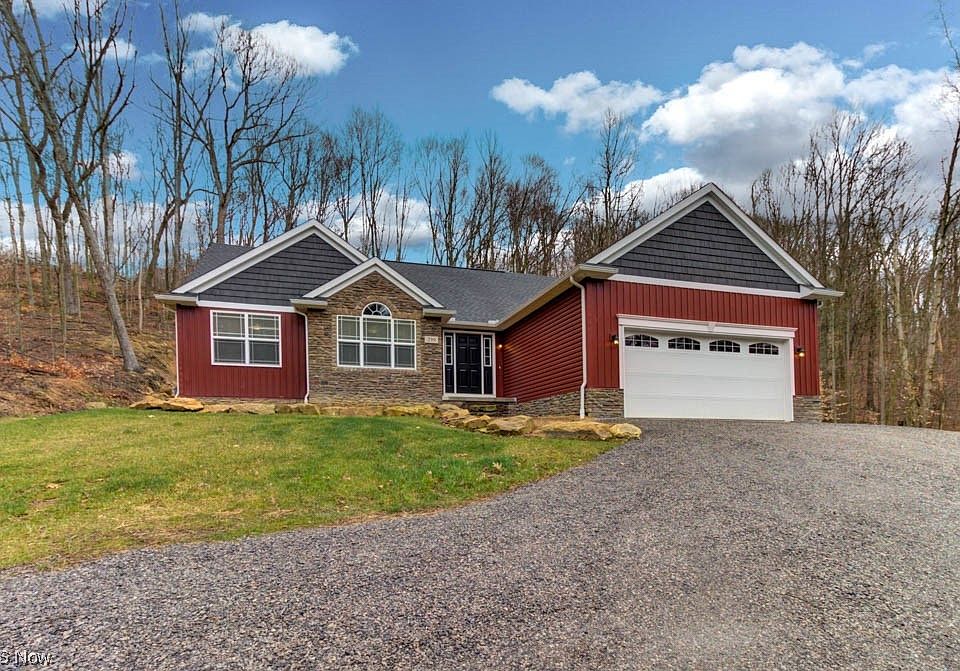 This 2022 built home is for sale at Lake Mohawk, no need to wait for a house to be built, you can start enjoying lake living NOW. Lake Mohawk is a private gated community with a 500 acre unlimited horsepower lake, 3 beaches, 9 hole executive golf course, tennis/pickleball courts, and much more. We love the location of this home, it is nestled quietly on the walking path with plenty of wooded areas in the back for privacy. Close to a docking area, easily get to your boat or to the docking area for fishing. This new ranch home has all you are looking for in first floor living…open floor plan with ample living space, cathedral ceilings with a beautiful beamed ceiling, spacious first floor laundry room, three bedrooms and two full bathrooms on the main floor. The kitchen has copious amounts of counter and bar space for entertaining, a sizable pantry, luxury vinyl flooring and of course, new appliances (gas stove) that convey. The lower level offers another abundant living space, a l