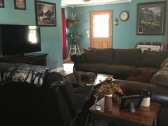 Very nice home and property with lots of Indian creek frontage , nice barn , gated , private but convenient .