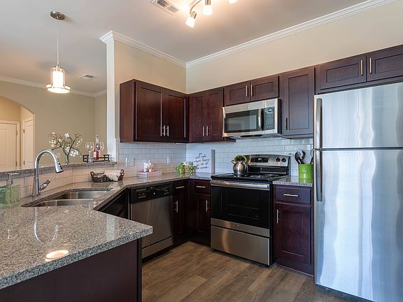 - Exterior features: BBQ/Picnic Area, Building-wide Wireless, Car Care Center, Courtyard, Crown Molding, Efficient Appliances, Electric Vehicle Charging Stations, Garages Available, Garden, Granite Counters, High Ceilings, High-speed Internet Ready, Hydro Massage Therapy, Media Room, On-Site Maintenance, On-Site Management, Package Receiving, Pet Park, Smart Locks, Stainless-Steel Appliances, Sundeck, Tanning Bed, USB Ports in Kitchen, Wood-Style Flooring