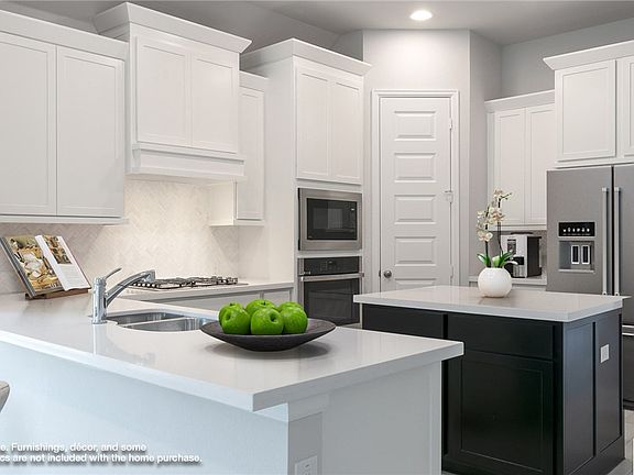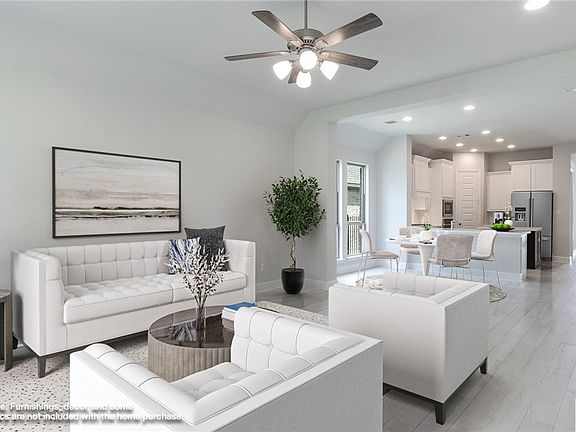 Home office with French doors set at entry with 11-foot ceiling. Open kitchen offers center island and corner walk-in pantry. Dining area is adjacent to open family room with wall of windows. Spacious primary suite. Dual vanities, garden tub, separate glass-enclosed shower and large walk-in closet in primary bath. Secondary bedrooms include walk-in closets. Covered backyard patio. Mud room off two-car garage.