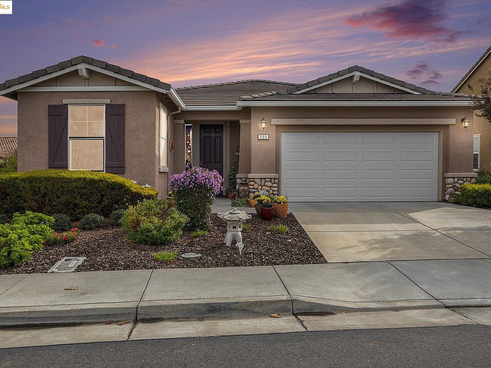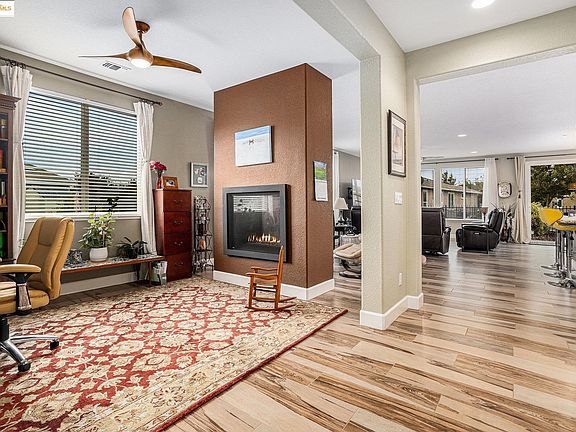 A light and open Reflect plan gives you room to live and entertain with friends and family. The spacious great room concept provides many options for relaxing either by the double-sided gas fireplace or just watching tv. Wood look tile is carried throughout the main living areas with carpet in the bedrooms. The well-appointed kitchen has a large granite island for barstools and informal dining as well as plenty of room for your formal dining space. Kitchen includes a beautiful custom backsplash, custom cabinet pull outs, and stainless appliances. The secluded primary bedroom enjoys a slider out to the patio and the bathroom area has a large shower with glass doors and separate vanities with remodeled granite countertops. This home enjoys one of Trilogy’s larger lots with a big side yard with raised beds for more room for the gardener in the family. It has an energy efficient pre-paid solar lease to keep utility bills low. Trilogy is a 55+ active adult community with many activities and clubs to be as busy as you like, or you can choose to relax at home. Come by the first Open House on Sat., 11/22, 12-3 PM.