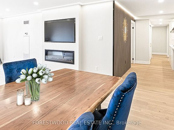 Experience the pinnacle of refined living in this breathtaking, custom-designed 3-bedroom condominium, where timeless elegance meets contemporary luxury! Every detail of this remarkable home has been meticulously curated, showcasing designer finishes, gleaming hardwood floors, bespoke upgrades, and sweeping panoramic views that will leave you captivated. *Step inside to discover a grand open-concept living and dining room with concealed lighting, anchored by a striking fireplace set within a custom built-in feature wall, seamlessly flowing to an expansive balcony - a perfect backdrop with stunning views of Downtown Toronto and Lake Ontario. *The open-concept dining room is illuminated designer lighting, creating an inviting atmosphere for intimate gatherings. *The custom kitchen is a statement in both style and function, featuring concealed LED lighting, stainless-steel appliances, quartz countertop with a breakfast bar and lots of storage space. *For those working from home, the private office/den is enclosed by double glass doors and provides a separate space. *Each bedroom offers generous proportions with custom closet organizers, while the primary bedroom boasts a walk-in closet and a spa-inspired ensuite bath with a frameless glass shower & designer vanity. *The main bathroom features porcelain tiles with niche detailing, a deep soaker tub, and a custom quartz-topped vanity. World-class amenities include a state-of-the-art fitness centre, inviting indoor & outdoor pools, sauna, elegantly appointed party room, 24-hour concierge service, and beautifully landscaped outdoor spaces. Positioned in a coveted location, this residence offers effortless access to TTC transit, Kipling Station & GO, Sherway Gardens, parks, top-rated schools, major highways, and Pearson International Airport. Whether as a sophisticated urban sanctuary or an investment in unmatched quality, this property stands as a testament to exceptional craftsmanship, elevated design, and premier living.
