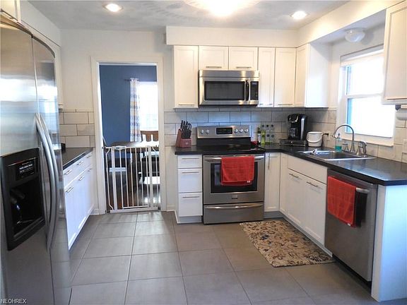 This completely remodeled home in West Akron is amazing and will not last long. Beautiful hard wood floors through out. Large Great Room with wood burning fireplace opens to Large Dining Room. Large covered patio off dining room with fenced in backyard. Both bathrooms have been remodeled completely. The kitchen is bright and sunny with tile floors newer cabinets Stainless steel appliances. Upstairs features 4 large bedrooms including the master with a great walk in closet. All bedrooms have ceiling fans, neutral decor and hardwood floors. The roof, Furnace, air conditioner, water heater all new one year ago. The copper plumbing and electric were also updated last year. Home is wired for a security system too. To complete this home it offers a park across the street and walking distance to St. Sebastian School.