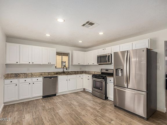 NO HOA / OWNED SOLAR = Huge savings - Priced to sell! This single-family home is ready for your touch. Features wood-gain ceramic tile and newly installed carpet flooring. The eat-in kitchen includes granite countertops and a full suite of stainless-steel appliances, including a gas stove. All bedrooms are spacious and offer good closet space. The main bedroom features a walk-in closet and an ensuite bath. The secondary bedrooms share a bathroom. A little TLC in the backyard and viola!