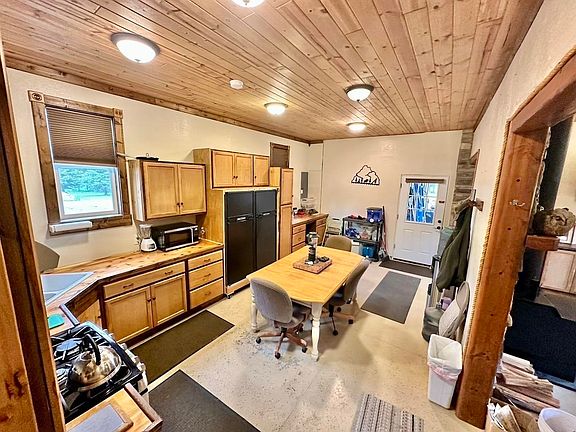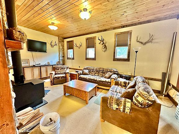 Embrace sustainable living with this 20 acre paradise, featuring propane-powered kitchen appliances including a stove, fridge, and heating system. A 9500-watt dual fuel, propane/gas generator, supplemented by solar energy, ensures reliable power for all your needs. The spring-fed water system ensures a constant supply of fresh, pure water with two 1200 gallon holdings tanks. The cozy 2-bedroom, 1-bathroom home serves as the perfect rustic retreat, blending seamlessly with its natural surroundings with a year round creek. Warm wood accents and large windows invite the beauty of the outdoors inside, while a wood-burning stove provides cozy warmth on chilly evenings. A spacious 30 x 34 pole building offers ample storage for all your outdoor gear, vehicles, and recreational equipment. The additional 500 square foot cabin with woodstove, small solar system and plumbed for propane adds additional room for guests. Property also has a 1500 gallon septic tank.