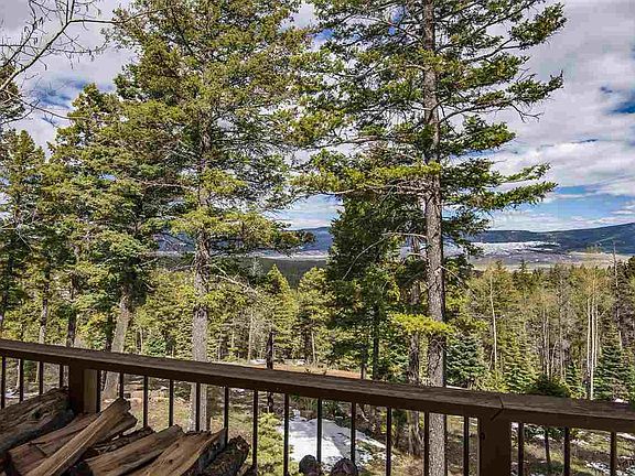 BIG, SWEEPING VIEWS of the Moreno Valley from Tom Reik-built contemporary home, perched on 11.65 acres of aspens and conifers. Very private, but less than 10 minutes from the Village of Angel Fire. Open floor plan with lots of windows and light. Kitchen with granite counter tops, counter seating and views. Large living/dining area opening to deck. Master Bedroom/BA and sauna separated from the 2 Guest Bedrooms in another part of the house. Large, attached 2-car garage with large bonus room framed in and ready for a new owner to complete. Second generation fiber-optic internet run into house for lightning-fast data transfer and streaming video. Avoid the stress of big-city life and work from the peace of the southern Rockies. Easement into the Carson National Forest from Taos Pines is close-by. Less than 15 minutes to the Angel Fire Resort ski mountain and the many Resort amenities which include a PGA-rated golf course. Angel Fire airport, with its jet-capable runway for private aircraft, is about 10 minutes away. The historic town of Taos is less than a 40 minute drive through the beautiful Taos Canyon. An incredibly valuable package for those that love nature and are looking for a get-away from the demands of urban living.