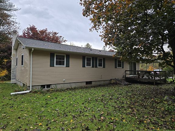 Charming single level living on 2 Acres. Set on a peaceful 2-acre lot, this well-built 4-bedroom, 2-bath Ranch style dwelling offers comfort, space, and great potential. Built in 1971 and featuring approximately 1,300 sq. ft. of living space, the home includes a newer roof, updated heating system, and low-maintenance vinyl siding. The spacious eat-in kitchen opens to a bright living area, while the enclosed porch and back deck provide great spots to relax and enjoy the quiet surroundings. The full unfinished basement with a wood stove offers plenty of room for storage or future expansion. A large 2-car carport adds excellent covered parking. In overall good condition with room for cosmetic updates, this property is ideal for anyone looking for country living with convenience and value.