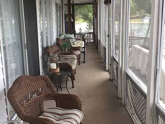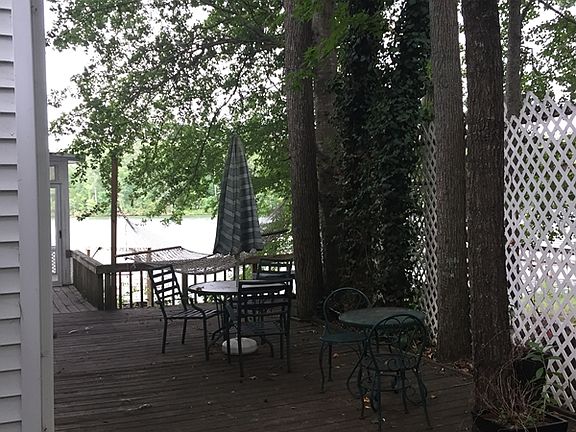 A wonderful weekender or all year long! All you need is a bathing suit since the house comes furnished. This cottage sits close to the water and has been completely renovated inside since it was purchased in 2012. As a separate purchase the pontoon is even available. All three bedrooms are on the second floor with two full baths and a roomy master on the lake side of the house with a nice walk-in closet. A large spa tub in one of the bathrooms is big enough for two. The kitchen and dining areas across the front of the house have wide sliding glass door views of the lake that open onto the screened porch. Open living/ dining area provides spacious room for entertaining. A small downstairs den could also be a 4th bedroom which joins a full bath. The screened-in porch is furnished with comfortable outdoor furniture which spans the width and one side of the house. It also contains a gas fireplace for that special feel in cooler weather. The other side of the house has a deck to catch the lake breezes which is entered from the screen porch. There are three docks on the waterfront, one for swimming, one for sunbathing and the other for the pontoon. The driveway easement leads directly to a private landing. Behind the house is a double garage attached to the house by a breezeway. The crawlspace under the house provides ample storage for a kayak and other toys that come with the house. New roof/new refrigerator. A pump provides water for the lawn and for the slide on the end of the swim dock.