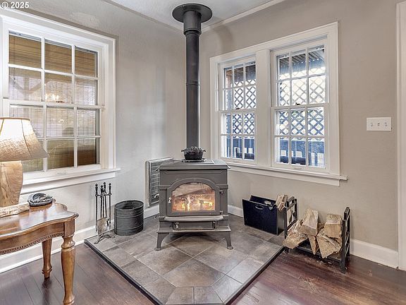 Brand-new remodeled bathroomDual ceiling fansDurable tile flooringInviting coffered ceilingsOriginal gleaming hardwood floorsCozy wood stoveImpressively large in-town lot