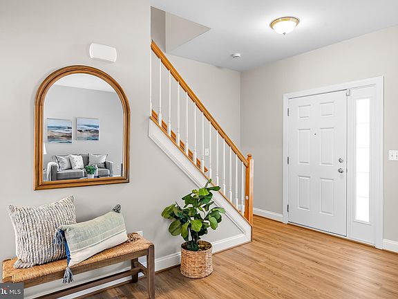 Welcome to this 2008 built Colonial offering charm, updates, and a convenient location. The inviting front porch leads inside to a bright and spacious living room with large windows, all accented by brand new main-level flooring and fresh paint throughout. The eat-in kitchen features stainless steel appliances, a pantry, and dining space with a sliding door that opens to the back deck. Off the kitchen you’ll also find a separate laundry room and a half bath. Upstairs, the primary suite offers a walk-in closet and attached full bath, with new carpet in the bedroom, hall, and stairs. Two additional bedrooms with LVP flooring and large closets share a hall bath. The finished lower level provides a versatile recreation room, while the unfinished portion offers abundant storage with built-in shelving and a rear walk-out entrance. The rear yard is fully fenced with composite decking, garden beds, and plenty of space for outdoor enjoyment. Driveway parking for two cars completes the package. Conveniently located near Quarterfield Road shopping, major highways, and BWI Airport, this home is move-in ready and waiting for you.