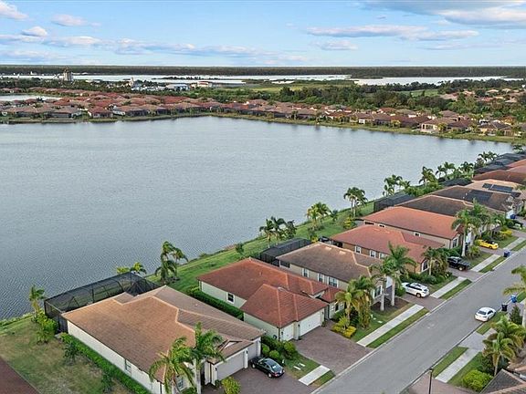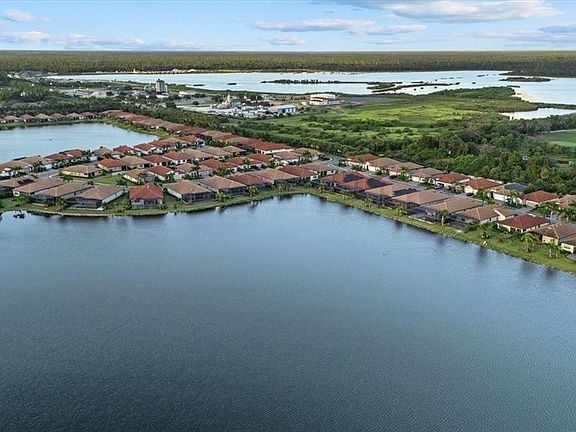 One or more photo(s) has been virtually staged. Welcome to resort-style waterfront living in Toscana Isles, one of North Venice’s most sought-after gated communities. This upgraded Edison model by D.R. Horton sits on an oversized lakefront homesite and combines modern finishes, functional design, and breathtaking water views. Offering 3 bedrooms, 2 bathrooms, a versatile flex room/office, and a rare 3-car garage, this residence has been thoughtfully enhanced to deliver both style and convenience. Step inside and discover a light-filled open floor plan, where durable tile flooring flows seamlessly throughout—there is absolutely no carpet anywhere in the home. The heart of the home is the gourmet kitchen, designed with rich brown cabinetry, quartz countertops carried into every bathroom, stainless steel appliances, a walk-in pantry, and a spacious center island overlooking the dining and living areas. Multiple sliding doors extend the living space outdoors to a covered lanai, already pre-plumbed for an outdoor kitchen, making it the perfect spot for entertaining or enjoying serene sunsets over the lake. The private primary suite is tucked away at the rear of the home, offering direct views of the oversized lake right outside your windows. Imagine waking up to tranquil water views and watching the sunrise over the lake as you begin your day. This serene retreat also features tray ceilings, dual walk-in closets, and a spa-like bath with dual vanities topped with quartz, a soaking tub, and a walk-in shower. Two additional bedrooms and a full guest bath are located toward the front, providing comfort and privacy for family or guests. A flexible den/office offers even more space for today’s lifestyle needs. Living in Toscana Isles means more than just a beautiful home—it’s a vibrant lifestyle. Residents enjoy access to a resort-style infinity-edge pool overlooking the lake, a grand clubhouse with fitness center and social rooms, tennis, pickleball, bocce courts, a playground, dog park, and kayaking or fishing on the community’s expansive spring-fed lakes. The HOA takes care of lawn care, irrigation, and shrub maintenance, ensuring low-maintenance living so you can spend more time enjoying everything the community and surrounding area have to offer. Conveniently located just one mile from I-75, Toscana Isles offers quick access to Sarasota, Tampa, and Naples, and is only minutes from Nokomis and Venice beaches, the Legacy Trail, shopping, dining, and the new Sarasota Memorial Hospital. Whether you’re looking for a seasonal retreat or a year-round residence, this home offers the perfect balance of elegance, comfort, and resort-style amenities. Experience the best of waterfront living in Toscana Isles—schedule your showing today and see why this upgraded Edison model is a true standout