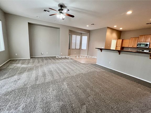 Great home with private fenced pool! Very open floor plan with 3 bedrooms & a den (no closet), kitchen with breakfast bar, granite counters, refrigerator, great-room/dining room combo, nice garden area in back with extended patio, 2 car garage with extra cabinets. Beautiful fenced play pool with a water feature. Gas & electric. Alarm system requires tenant subscription if they want to use it. Owner will pay $30.00 a month towards pool service & tenant pays the difference. No smoking or vaping of any kind please. Security deposit will equal at least one month's rent. Tenant must provide proof of Renter's Insurance prior to moving in. 1 small pet may be approved. Please call regarding pets. Please refer to Policies on Renting for important information.