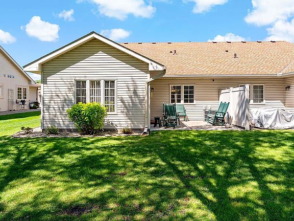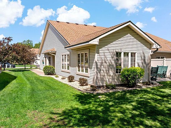 Pristine and spacious townhome, all on a single level. Two bedrooms, two baths and a spacious sunroom that leads to a 13x11 sunny patio. This home is sunny, with lots of windows and 9-foot ceilings. Beautifully landscaped Patrina Park townhome, right by two parks! The closest park, Pioneer Park has a new children's water park, four ballfields and tennis courts. The bedrooms are spacious, and the primary suite has facing closets (each 2 x 7). Newer primary bath tile. The two-car garage is 19x22, and has a pull-down ladder with additional storage. The garage walls and ceilings were just recently fiinished and painted. New association driveways installed were just this year. In-ground sprinkling system. With a few exceptions for the family, most of the furniture can stay, if the buyer chooses.