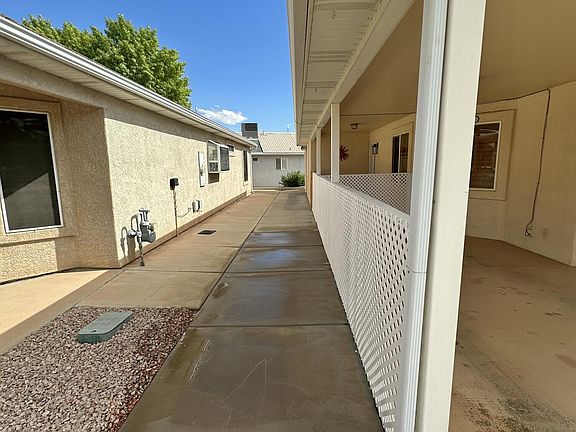 Charming Home in Rio Virgin Estates, delightful single-story nestled on the border of St George and Washington City. This 781 sq ft home offers 2 bdrm, 2 bath, updated with Fresh paint throughout, LVP flooring, Upgraded appliances and W/D, beautiful wood shutters, kitchen skylight! Enjoy a well-maintained lot, perfect for those seeking comfort, convenience, and an active lifestyle. Take advantage of the many activities, pool, exercise classes, near city wide bike path. Spacious open layout, central air conditioning and forced air gas heat. Located in a peaceful 55+ community with top-rated amenities, this home has been lovingly maintained. Close to shopping, restaurants, and more but tucked back off main road, so no through traffic. This home is priced to sale so call today. Easy to show