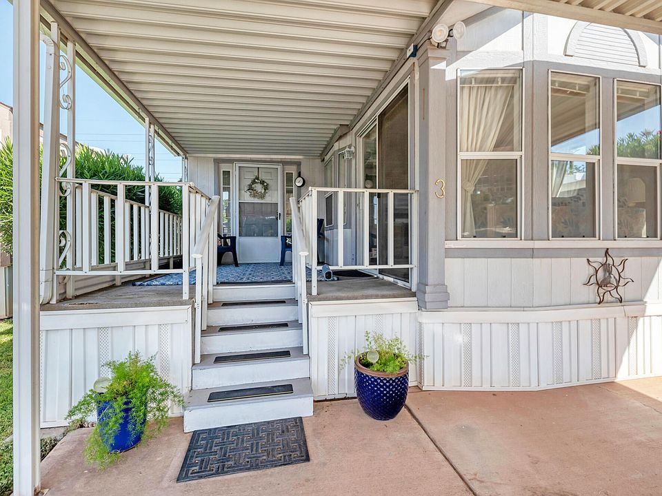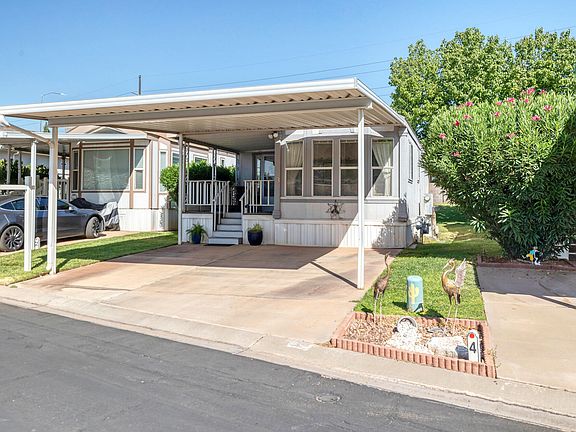 Welcome to your new home in the highly sought-after Rio Virgin Estates, a vibrant 55+ community nestled along the scenic Virgin River and walking trail. This well-maintained 1-bedroom, 2-bathroom mobile home also features a versatile flex room—perfect as a family room, guest space, or second bedroom. New flooring in kitchen and bathrooms. Enjoy relaxing afternoons on the covered front porch, ideal for socializing with neighbors or simply soaking up the peaceful surroundings. Community Perks Include: