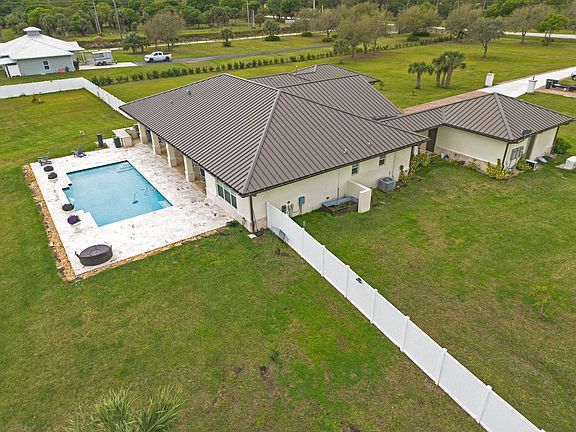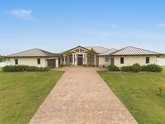 Beautiful almost new custom built home on 5 acres. This equestrian friendly community is located directly across the street from Meadowood Golf & Tennis Club and just down the road from Summer Crush Winery. Offers private country living while close to Ft Piece and Vero Beach shopping. Whole house generator and impact windows. Modern open layout fully tiled, chefs dream kitchen with extra large refrigerator. Porch overlooks pool, summer kitchen, vinyl fenced yard. Bring your horses and all your toys.