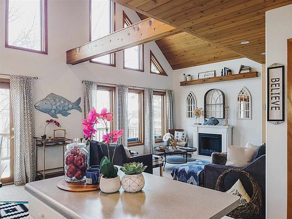 Live your BEST life at the LAKE! This GORGEOUS lake home is right on the water at beautiful Lake Metigoshe! It features 110 FEET of amazing beachfront. This home is a custom built A-Frame with incredible vaulted wood ceilings, and wall of windows offering you an incredible view of the lake. This home has everything you could ever dream of in a lake home. The main floor has an incredible open concept great room that is a dream for entertaining friends and family, and right off of the dining room is a door to the huge wrap around deck. There is a 3/4 bathroom and laundry room located conveniently on the main floor for you and your guests, and makes washing all of those swimsuits and beach towels a breeze! Upstairs you will find the master suite that is literally a RETREAT, offering your own 3/4 bathroom and views overlooking the main floor and incredible views of the lake. The finished walk out basement is such a BONUS! The cozy family room with fireplace, and 2 more bedrooms ( 1 is non conforming.) There is room for all of your guests in this dream of a lake home! Outside you will be in love with the views from the 2 story deck and all the incredible space this huge lot has to offer. There is an attached 2 stall garage which is such a great feature for a lake home, a shed and even a garden! Take advantage of our AMAZING North Dakota summers and live at the lake, and even enjoy all of the incredible winter activities Bottineau has to offer at this YEAR ROUND Lake Home! This home has only had 1 owner and they have taken immaculate care of it and even just replaced the shingles and any damaged deck boards/railing, it literally is turn key for you to come and jump in the lake!
