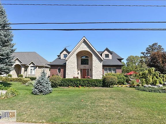 Stunning 2-Storey Home in a Prestigious LaSalle Neighbourhood! Larger than it appears from the outside, this full brick and stone residence offers 4+ bedrooms and 4.1 baths, situated in an established and highly sought-after area of LaSalle. Featuring a sunroom and a fully finished basement with a second kitchen, this home is designed for both comfort and function. The grand foyer greets you with a beautifully detailed tin ceiling. The main floor includes a spacious bedroom with ensuite and walk-in closet, a large kitchen with granite counters, island and dining area, formal dining room, living room (or optional 2nd bedroom), a beautiful great room with soaring ceilings, main floor laundry, and a convenient 2-piece bath. Upstairs, you’ll find 3 bedrooms including a luxurious primary suite with tray ceilings, a 5-piece ensuite, and a massive walk-in closet, plus an additional 4-piece bath and gleaming hardwood floors throughout. The finished lower level is perfect for entertaining and extended family living with a large family room, rec room, den/workout space, craft/hobby room with a unique revolving door, bedroom, 4-piece bath, second kitchen, and plenty of storage. Exterior features include a sunroom, a 2-car attached garage with side drive, plus a separate bonus garage. Walking trails are just steps away, with convenient access to the E.C. Row Expressway, Hwy 401, outlet mall, and LaSalle’s main grocery stores.