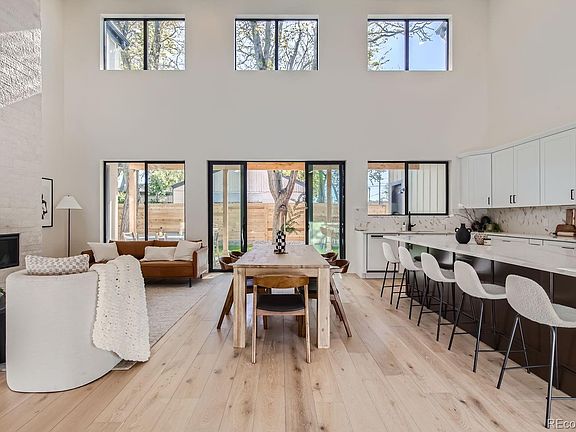 All details perfected and landscaping added to this stunning new construction in the prime location of University Hills. This modern home was built with great attention to detail beginning with floor to ceiling windows showcasing a bright and open layout. The vaulted ceilings are sure to impress while enjoying a meal in the eat in kitchen or cozying up to the fireplace in the living room. The kitchen boasts a large stained wood island, sizable walk in pantry, quartz countertops and high end Thermador appliances including a 6 burner gas stove. The fireplace extends up to the vaulted ceilings paved with Jerusalem cream stone with its delicate chiseling marks applied by hand. The main level also features two bonus rooms that can serve as a formal dining room, dual offices, playroom, fitness room or additional bedrooms. If you enter through the finished 3 car garage you will be met with one of two laundry rooms inside a large mudroom with ample storage. The main floor suite won't disappoint, equipped with a walk in closet, ensuite bath and access out to the back patio. Perfect for multi-generational living. Upstairs you'll find a cozy sitting area, additional laundry room with utility sink, two bedrooms and the upper primary suite. The luxurious upper primary bedroom boasts tons of natural light with large windows, large custom closet, and a classic yet chic 5 piece bath. The additional two bedrooms each have a walk in closet and private ensuite baths. Lower level opens to a spacious living room and bar area featuring a wine and beverage fridge. You'll also find an additional bedroom and bath. Great home for entertaining. Enjoy outdoor living in the low maintenance backyard or fence in the front yard for more space for kids or pets. Conveniently located near shopping, schools, transportation, restaurants and only a quick trip to downtown Denver. Come see this one-of-a-kind move in ready home!