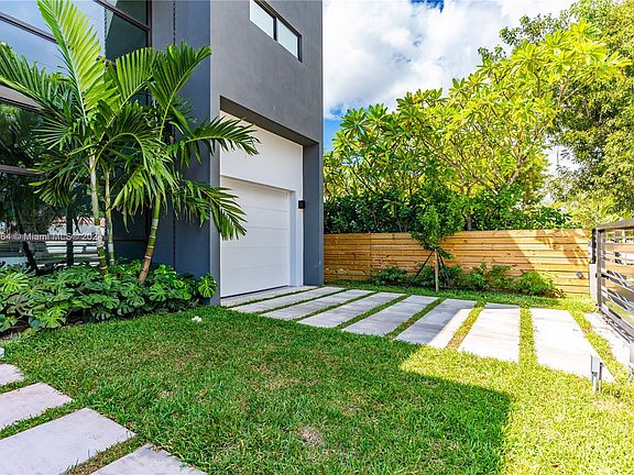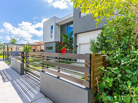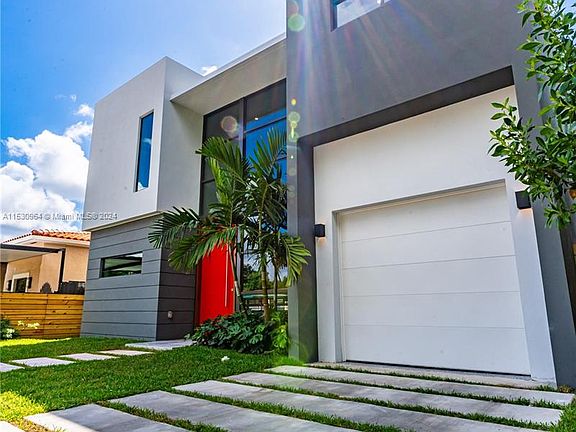 New construction luxury home with modern architectural design and detailed finishes, exudes a contemporary and sophisticated style. Open floor plan that seamlessly connects the living room, dining room and kitchen areas. Large impact windows fill the home with natural light, highlighting the high ceilings and enhancing the overall space. Granite floors. Italian kitchen equipped with Bosch appliances, a large quartz counter top and ample storage space. The house offers 4 bedrooms with designed closets and wooden floors, 5 full bathrooms with white marble and German faucets. Additional features include an office, laundry room, one-car garage, electric gate, and a landscaped patio and pool with spa perfect for outdoor activities.