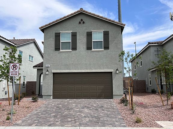 Welcome to Casa Bella. This residence offers three bedrooms, two bathrooms, a loft, and a two-car garage equipped with a tankless water heater. The interior features warm tones throughout, an upgraded kitchen with an island and breakfast bar, an oversized pantry, and ample closet space. The upstairs includes a loft and a primary bedroom that is separated from the secondary bedrooms, as well as a spacious laundry room. The property boasts low-maintenance desert landscaping in both the front and rear yards. Conveniently situated near all that Las Vegas and Downtown Las Vegas have to offer.