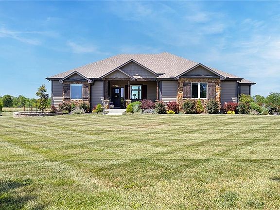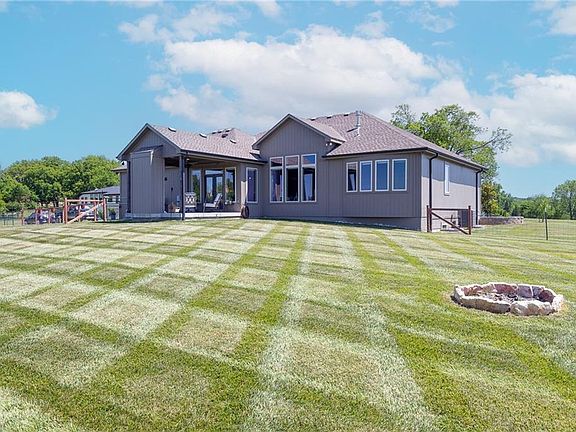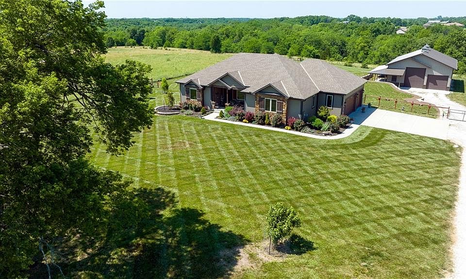 Wonderful opportunity to own small acreage minutes from downtown Lee's Summit and a short drive to Kansas City. Pristine home with four bedrooms, 3 full bathrooms, covered patio, beautiful landscaping and a large 40x60 outbuilding to house your classic car collection, your in home business or possibly livestock. Outbuilding has 50 amp electric service and water and septic. Sun drenched spot for a large garden, orchard or vineyard or an in ground pool Possibilities abound on these 3.22 acres with full access to adjoining greenspace to ride your horse, walk or fish. This one has all the bells and whistles including a pet wash room, remote controlled window shades, surround theatre system and so much more!