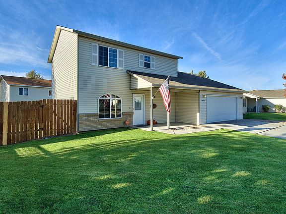 Immaculate and spacious, this four bedroom three bathroom home offers astounding spaces inside and out. Brick accents merge with a covered front patio, and additional gravel parking adds convenience. From the open Onyx stone entry, the living room is highlighted by lush carpeting and a stylish ceiling fan. Natural paint tones create a calming atmosphere while the living room opens to the dining room and to the carpeted staircase. Providing access to the outdoor entertainment space via sliding glass doors, the dining room is open and bright. A well-suited breakfast bar offers additional seating while the sizable kitchen is graced by gorgeous new cabinetry, Formica countertops, tiled stove backsplash, and an appreciative pantry. Inside the master suite, you’ll appreciate vaulted ceilings, an enormous closet, and private entry to the backyard patio, plus an en-suite which provides an expansive his and her vanity area. Three more remarkably-sized bedrooms, all with generous closet space, make this an ideal family home. Built-in shelving and student desk are just one of the many bonuses the bedrooms in this home have to offer. The recently updated second floor bathroom boasts wood grain ceramic tile along with a stunning double-sink vanity. True relaxation can be found in the backyard where an enclosed garden space and granite tiled entertaining patio overlook the lush lawns. Timed sprinkler irrigation is an added convenience. A custom fire pit and sitting area rest below mature aspen trees creating a one-of-kind experience. Further adding to this attractive home are the two attic areas providing coveted storage space along with all of the new features including a Lennox central air unit and a stainless steel dishwasher.