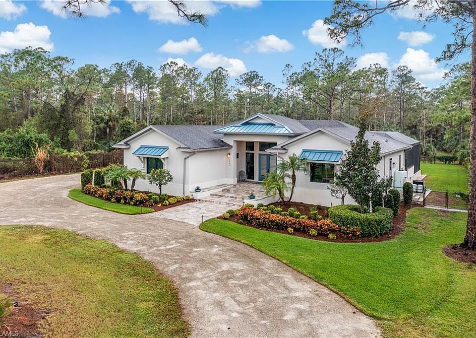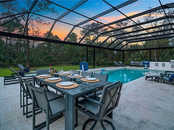 Turnkey & Move-in Ready - The perfect blend of Luxury and Town & Country living, available for Seasonal or Annual rent | This meticulously 3BR/2BA crafted custom home offers just under 2,000 sq ft & is nestled on a pristine 2.73 acres. Blue Travertine at the entrance, leading to High-End Tile Plank flooring throughout the Open-Concept Split Bed living space. Designer furnishings, 12 ft ceilings, a new pool screen, custom gas grill, fully fenced with an electric gate, and a durable metal & shingle hybrid roof. The gourmet kitchen features custom wood shaker cabinets, quartz countertops, and Maytag stainless steel appliances ideal for outdoor life & entertainment. and impact windows and doors. Relax by the oversized custom heated Pool & Spa, surrounded by a Shellstone paver deck, within a spacious & meticulously landscaped fenced yard, ideal for those seeking a return to nature & outdoor recreation, but still close enough to all the beaches & entertainment that Naples has to offer. Exceptionally located close to Publix groceries, CVS pharmacy, gas stations, shopping and nearby dining. Experience freedom & SWFL elegance at its finest schedule your viewing today!