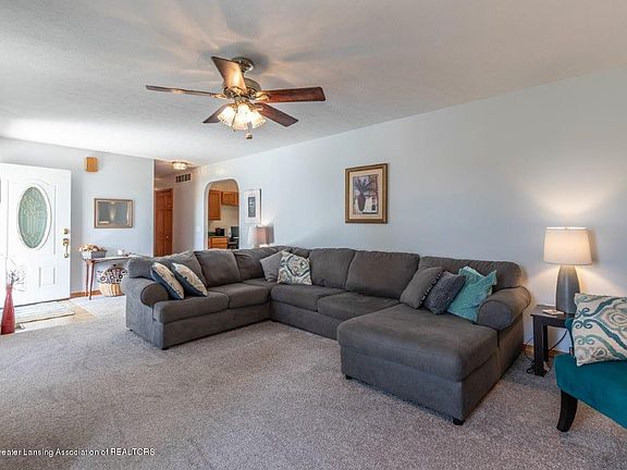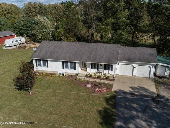 Welcome to 2992 Budd Road, Stockbridge! Quality home on peaceful 2 acres. Large open floor plan, 4 bedrooms 3 baths, master suite offers 2 spacious walk-in closets. 1st floor laundry room located right off the bedrooms for ease and organization! Tons of closet space throughout home. Attached 2 car garage with a lean too. Great views of secluded backyard with mature trees and tastefully landscaped. The deck off the eat in kitchen is perfect to enjoy quiet time or BBQ with your favorite friends. Home also features a built in office space, extra family room in lower level with full bathroom and bedroom. 28x40 pole barn w/ 220 electric, cement and additional loft storage leaving you plenty of space for all your hobbies and toys!