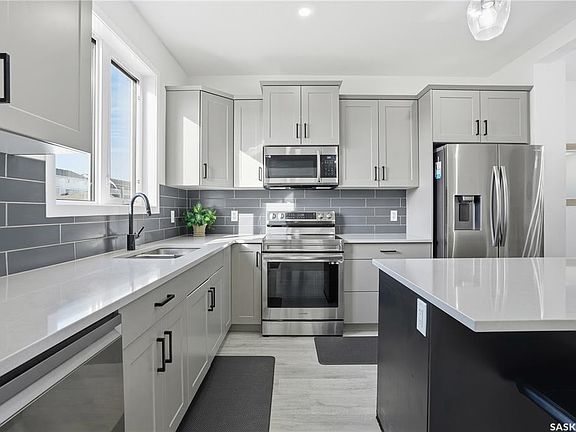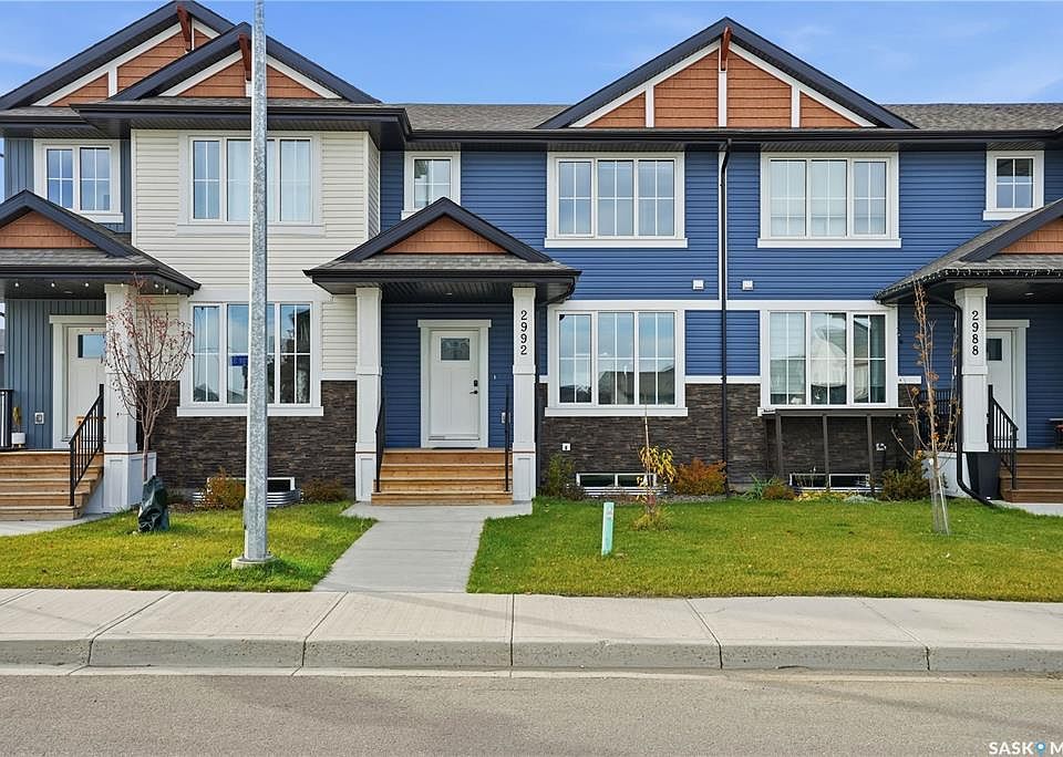 Welcome to 2992 George Street in the ever-growing community of the Towns in East Regina. This townhome built in 2022 offers 1428 sq ft of thoughtfully designed living space, contemporary design, & everyday comfort. Featuring 3 bedrooms, 3 bathrooms, this home is perfect for family living. Built by Pacesetter Homes, this two-storey home exemplifies quality craftsmanship & lovely finishes, including quartz countertops, updated plumbing fixtures, & durable neautral colored laminate flooring. The open-concept main floor provides a natural flow between the entry, living, dining, & kitchen areas, creating an inviting space for both practical and daily living - and so easy for entertaining. With an east/west configuration, the front of the home is bright & illuminates with the morning sunshine. What a wonderful place to relax with a morning coffee. The area continues into a dining area, & the kitchen is equipped with a spacious quartz eat up island, plenty of cabinets, drawers, & appliances (still under warranty until Jan 2026). The back of the home has a functional mudroom, & is complete with the 2 pc main floor bathroom. Upstairs, all three bedrooms are a good size with the primary suite featuring a walk-in closet, & a full bath ensuite. The two additional bedrooms offer ample storage & so much natural light. A second full bathroom & laundry area complete the upper floor. The basement is solid, & ready for future development. Additional highlights include front & back yard landscaping, a fully fenced yard, back parking pad (14x25) making it perfect for a future garage. Built on piles, with floorplans available for the new buyer, this home delivers great value in a family friendly area. This home is close to schools, handfuls of fabulous parks, east end amenities in Acre 21 shopping area for groceries, restaurants, pharmacies, retail shops, coffee shops, & so much more! Flexible possession is available.
