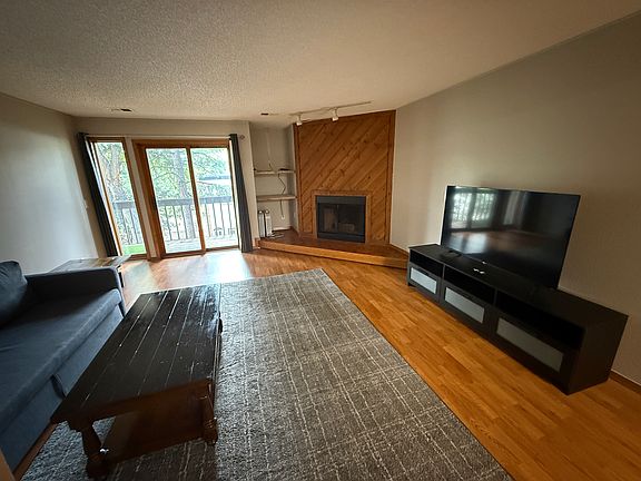 Cozy fireplaceOversized storage closetTwo balconiesIn-unit washer and dryerFull kitchen