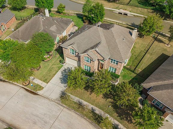 Lovely WATERFRONT home with lots of UPGRADES and all the space/rooms you could want, including a DOWNSTAIRS GUEST BEDROOM with a full en-suite bath! This home will not disappoint starting with the chef's kitchen with an abundance of cabinetry, island, wrap around breakfast bar, granite, built-in wine rack, DOUBLE OVENS, & more! Light & bright 2 story family room with WOOD flooring and gas fireplace! Spacious downstairs Master Suite with gas fireplace & wood floors! Master bath RETREAT with updated double vessel sinks, granite counters, & jetted tub! ALL secondary baths feature GRANITE counters! Upstairs features 3 bedrooms, gameroom with WET BAR, and a MEDIA room! Covered back patio with 3 fans to sit and enjoy the water view! Plenty of space to add your dream pool overlooking the water! AVAILABLE FOR IMMEDIATE MOVE-IN!