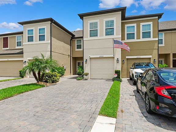 Welcome to Windermere Estates Townhomes—where comfort meets modern elegance in the heart of Wesley Chapel.This beautifully designed Andover II model offers the perfect blend of style and functionality, featuring 2 bedrooms, 2.5 baths, and a versatile loft that can easily convert into a 3rd bedroom or private office.Step inside to a welcoming foyer that flows into an upgraded kitchen, complete with stainless steel appliances—including a newer dishwasher and microwave—quartz countertops, and oversized cabinetry ideal for home-cooked meals. A convenient breakfast bar opens into a spacious dining area, perfect for entertaining, with a nearby powder room for guests.The open-concept living room is expansive and bright, highlighted by premium vinyl plank flooring and sliding glass doors that lead to a peaceful backyard patio—your own private oasis for morning coffee or evening relaxation. The attached one-car garage offers interior access, so you can stay dry while unloading groceries on a rainy day.Upstairs, you’ll find a large bonus loft offering endless possibilities—use it as a reading nook, workspace, or convert it into a 3rd bedroom. The centrally located laundry closet adds convenience, while the hallway leads to a well-appointed full bath with granite countertops, white subway tile, and matte black finishes. A generous secondary bedroom is ideal for guests or children.At the end of the hall, the private owner’s suite boasts two walk-in closets and a spa-like ensuite bathroom with an oversized walk-in shower, dual vanities, a private water closet, and a separate linen closet.Community & Location Highlights:Windermere Estates is a tranquil, well-maintained community located minutes from everything that makes Wesley Chapel one of Florida’s most sought-after destinations.Enjoy: The crystal-clear Epperson Lagoon (swimming, kayaking, paddleboarding). The Shops at Wiregrass and KRATE at The Grove for dining, shopping, and entertainment. Florida Hospital Center Ice, parks, trails, and nature preserves. Top-rated schools and easy access to I-75 & SR-56 for commuting-Whether you’re looking to relax or stay active, this location offers it all. Don’t miss the opportunity to make this beautiful townhome your own. Check out the 3D Interactive Virtual Tour and schedule your private showing today!