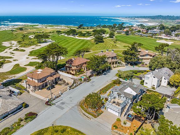 Luxurious ocean view estate situated in the heart of Pebble Beach, on the 15th hole of the Dunes golf course of the Monterey Peninsula Country Club. Ten years new, this home sparkles with pride of ownership. Showcasing a reverse living floor plan maximizing ocean views from the kitchen, great room, & upper ocean view terrace decks. Seamless flow between indoor & outdoor living spaces, creating the ultimate California lifestyle. Architectural design features include high ceiling, accent windows, luxurious finishes, and elevator. Primary bedroom, and the 3 guest rooms are located on the first floor. Low maintenance landscaping and a lovely wind sheltered backyard patio. Recreational opportunities abound in the Pebble Beach community: world class golf, hiking, boating, water sports, and so much more. Enjoy culinary cuisine at one of the many resorts restaurant or skip over to Carmel for some quaint European charm. Schedule a tour today, this enchanting estate is a rare find.