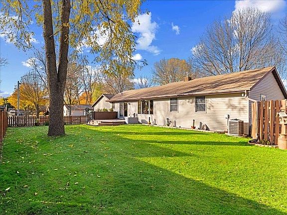 Extremely inviting and well-cared for one-story 3 BR, 1.5 bath on a beautiful corner lot with a sizable fenced backyard and established trees.There's a 3-stall attached garage and full basement stubbed for a bath. Vaulted ceiling in the center of the home gives an open, roomy feel to the space, and their are numberous updates throughout the home. All interior doors are 6-panel solid oak. The Master BR has double closets and an a convenient door adjoining it to the remodeled main floor bath. There is a bonus walk-out entrance in the east bedroom. Outside there is a newer composite deck off the sliding glass door facing south in the dining area, an 8x10 storage shed, and a second detached deck on the more private east end of the yard. Appliances are included. Don't miss this gem.