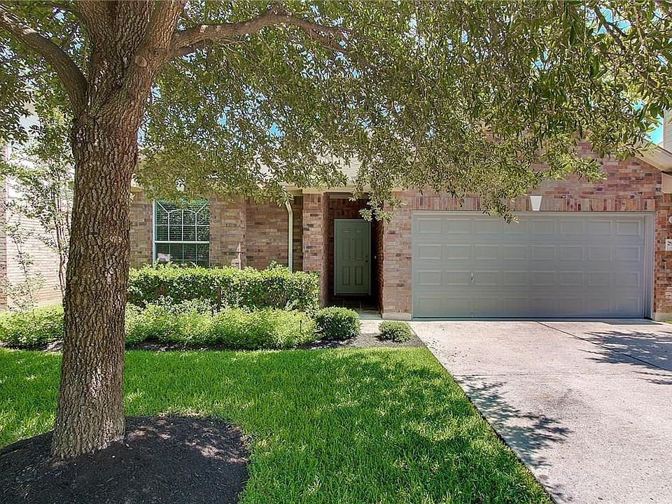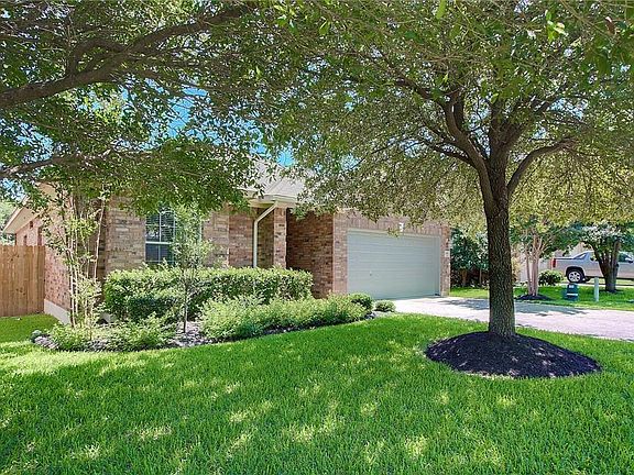 This beautiful one-story home offers an open floor plan with two flexible living areas the main living space flows seamlessly into the kitchen and dining room, while the second living area is located in the secondary-bedroom wing and can function as an office, playroom, additional dining area, or separate living room. The home features laminate wood flooring in all bedrooms and living areas, tile in the wet areas, and a fully landscaped backyard with complete sprinkler coverage, full privacy, and no rear neighbors. Its ideal location provides easy access to Brushy Creek trails and Cat Hollow Park, which includes volleyball and sports courts, walking paths, restrooms, and a pavilion.