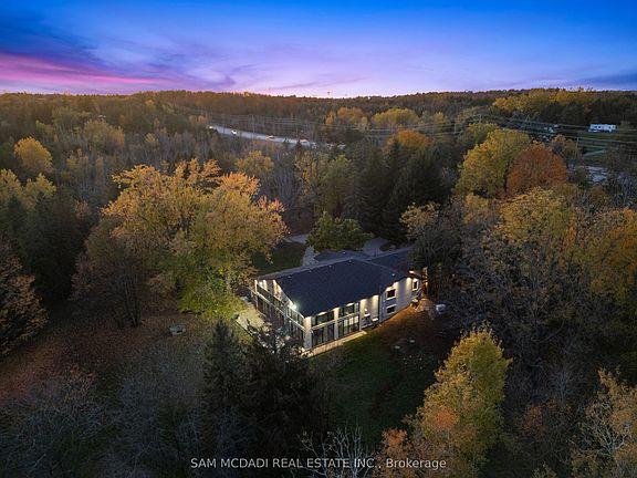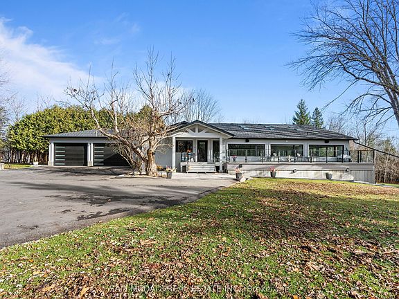 Welcome to 2993 Innisfil Beach Road, a private luxury estate nestled on 19.17 acres of Muskoka-like landscape in the heart of Innisfil. Designed for those seeking tranquility and sophistication, this newly built bungalow offers over 4,600 sqft. of refined living space combining modern design with natural beauty. A long private drive leads to an elegant residence surrounded by mature trees and manicured grounds. Inside, an open-concept main floor features Italian porcelain flooring and expansive windows framing breathtaking views. The chef-inspired kitchen boasts quartz countertops, an oversized island, LG stainless steel appliances, and custom soft-close cabinetry, flowing seamlessly into a spacious living room with a stone-surround electric fireplace. The primary suite is a serene retreat with multiple closets, including a walk-in with built-ins, and a luxurious five-piece ensuite featuring marble shower floors, a freestanding tub, and double vanity. A second bedroom and elegant 3-piece bath complete this level. The lower level is designed for entertaining, featuring a second kitchen and dining area with 17-ft ceilings, floor-to-ceiling windows, and a walkout to the backyard. A home theatre, two additional bedrooms, and a modern bath make this level perfect for guests or extended family. At the heart of the home is an extraordinary indoor saltwater pool and jacuzzi, complemented by skylights, a red cedar sauna with music and Wi-Fi, and smart controls for lighting and water features. Outdoors, enjoy private walking trails, a spring-fed creek, fire pit, and paved pathways throughout the property. Additional highlights include a 3-car garage, 800+ sqft. insulated barn, Russound built-in sound system, new roof, windows, furnace, and A/C, high-speed internet (1,000 GB), and city approval for three additional homes. 2993 Innisfil Beach Road is truly where modern luxury meets peaceful country living.