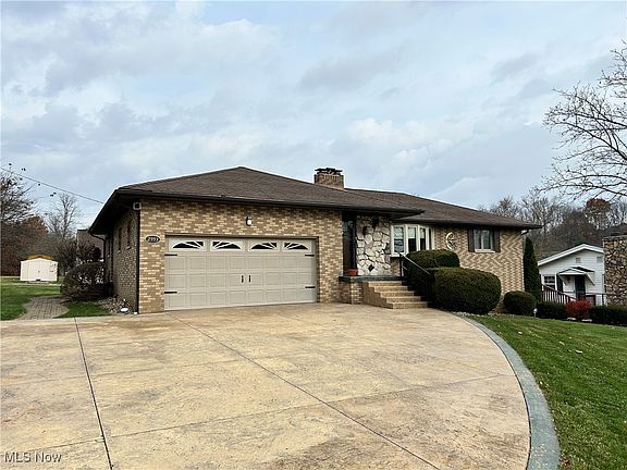 Brick Beauty! Highly desirable quality built all brick ranch with walk-out basement! Features an amazing 18ft high, 42 x 24 Outbuilding complete with 2nd full floor, electric, two 220 lines and cable. Car storage, workshop, man cave - so many options await! Upon arrival you will make notice of the modern and attractive stamped concrete circular drive. Enter into the roomy Foyer area with wood flooring. Convenient updated half Bath with stylish barn door. Kitchen offers full complement of appliances, updated sink and faucet, and pretty oak cabinetry. Dinette features large oak pantry and breakfast bar area with pass thru to Dining Room. Front Foyer entry leads into large Living Room with newer carpet (approx 2 yrs), brick fireplace with oak mantel and is wired for surround sound. Lots of natural light shines in from the newer beautiful bay window! Primary Bedroom is very spacious, as is Bedroom 2, both offering ample closet space. Bedroom 3 has been converted into a Dining Room. Can easily be converted back to a bedroom if needed. Main full Bath is very nice featuring tub/shower combo and large vanity w/dual sinks! Full walk-out Basement offers approx 950 sq ft of additional living space with expansive Rec Room featuring 2nd Fireplace w/insert and blower! Also features 2nd full Bath w/walk-in shower and dual sinks. Off of Bathroom is spacious walk-in closet. There is also plenty of room in Basement to add another bedroom if desired. Attached heated 2 car garage w/water and drain! Slider door w/interior blinds off of Dinette leads to large Deck overlooking private backyard! Newer central air and well pressure tank (approx 2yrs), and new submersible well pump. Convenient location near highway, shopping, dining and much more. This home is not to be missed! Come check out all it has to offer!
