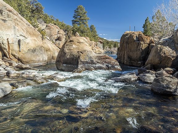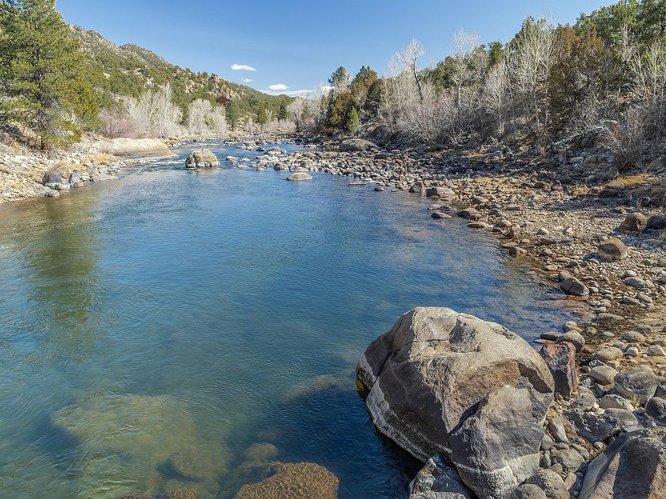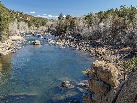 One of a kind property with 160 ft of Arkansas River frontage and a beautifully remodeled cabin close to town. River frontage includes more than half of the eddy below House Rock Rapid; excellent fishing spot (designated Gold Medal Waters) and great place to enjoy both peace and quiet and watch boaters. Cabin was remodeled in 2016 in a modern clean style. The kitchen is bright and features quartz counter tops, custom hickory slab kitchen cabinets, and modern appliances. Custom cabinetry and a tile accent wall in the living room compliment the mid century modern lightning fixtures, Luxury COREtec Plus LVT flooring throughout, a Jotul wood burning stove, and stunning views of Mt Princeton. You can see and feel the quality of the Emtek hardware and solid wood doors. The bathroom has crisp clean white tile with wainscoted walls. The cabin logs were last stained in 2017, and the chinking was replaced in 2009. A radon mitigation system was installed in 2010 and upgraded in 2018.