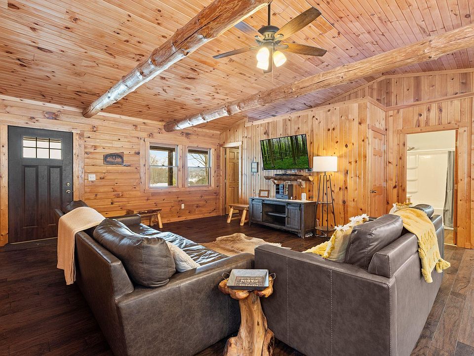 Set within the scenic landscape of Hocking Hills and just minutes from Hocking County Lake, this fully furnished log residence rests on five buildable acres offering privacy and flexibility. The three bedroom, two bath home is an active short term rental, ideal for personal use or continued income.