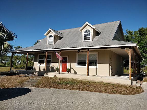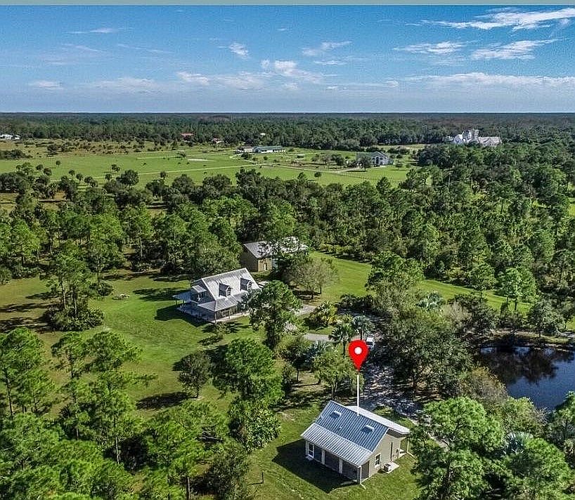 Florida style home with wrap around porch on 9.16 acres. Kitchen features solid surface countertops and peninsula bar. Second bedroom and office with closet (or third bedroom) on first floor with guest bathroom. Second floor is an extra-large master bedroom, master bathroom and loft. Home features a metal roof and concrete block construction on the first floor, 2x6 construction on the second floor. Newly built (2021) 685 sqft. 1 bedroom 1 bath plus office concrete cottage for in-laws or guests. You will fall in love with the 40x60 workshop with 10x10 roll up doors. This metal building also has an extra loft for storage and a 384 sg ft. air conditioned shop. Property is high, dry with cleared pasture land, pines and palmettos.